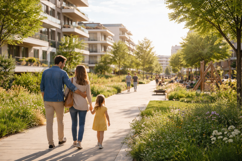 Esto supone convivir durante un tiempo con esa evolución. No todo está disponible desde el primer día, pero sí existe una hoja de ruta clara sobre cómo se desarrollará el barrio. En los proyectos actuales, esa planificación es fundamental: define desde el inicio la distribución de usos, la red de espacios públicos, la movilidad o la implantación de servicios.